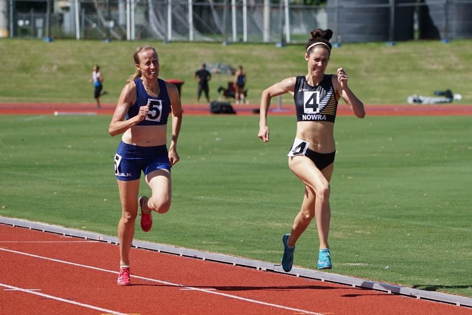 There is no doubt that the stand-out performance of the meet came from Erin Smart. Erin started her program winning the 40-49 years 400m in a new ‘best on record’ time of 58.87. The previous best time recorded was a hand time of 58.9 set in 2003. Next up was the 100m. Erin took the win in 12.98, which was close to the best on record of 12.60, held by South Coast athlete, Gianna Mogentale from Illawarra Blue Stars. In the 200m, Erin was determined. She pushed hard around the bend and flew into the straight. Erin powered home to finish 1st in 25.94, taking the record from Gianna this time, which had been set in 2006 at 26.09. In the final event on Erin’s program, the 800m, Erin led the way, but had Kimberley Fletcher from Maitland, hot on her heels. In the closing 50 metres of the race, Kimberley moved out into lane 2 to make her move. She came up almost level with Erin and looked to pass. Both gritted their teeth and fought hard. The photos clearly show the sheer determination on their faces. The crowd was cheering and Nowra was certainly urging Erin on. As they neared the finish line, Erin dug deep and made a final surge, crossing the line ahead of Kimberley to take the win in a new best on record time of 2.23.03. Ironically the previous record of 2.23.36 was held by Kimberley, which she set in 2019. Kimberley was gracious in defeat but Erin’s true grit certainly paid off.