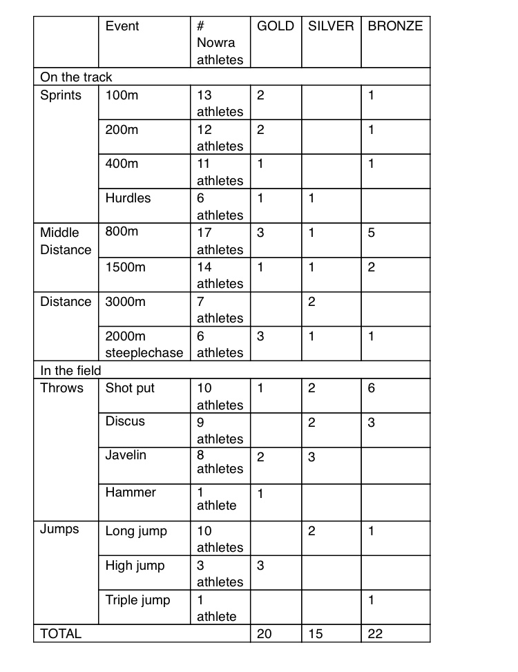 38 Nowra athletes competed (46 entered but 8 had to withdraw)