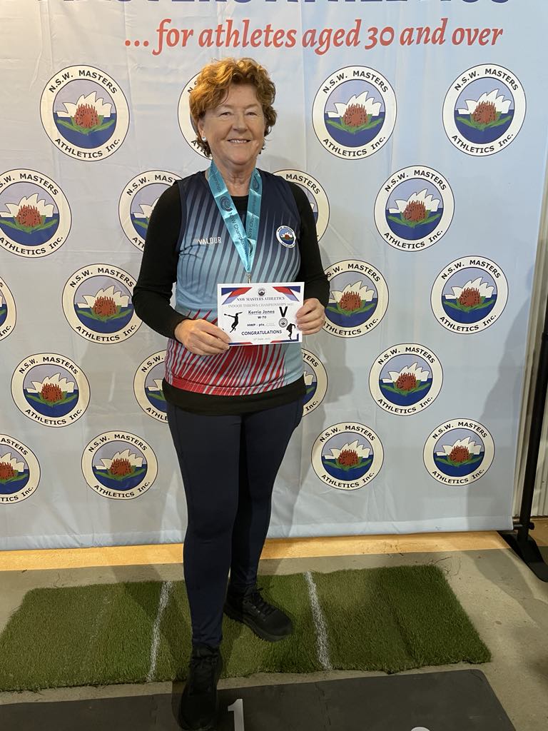 The NSW Masters Indoor Throws Championships were held at the Argentille Equestrian Centre in Lovedale on Saturday 21st June. Kerrie competed in the heavy weight pentathlon, taking the win, and in the process, breaking her own Australian indoor record with 2355 points.