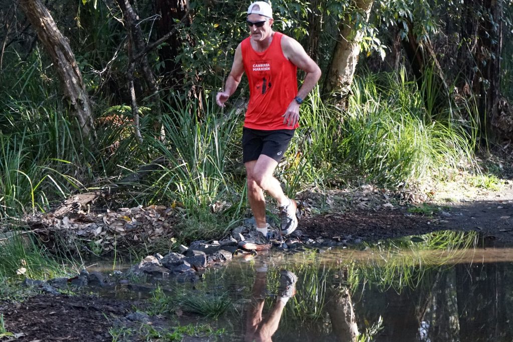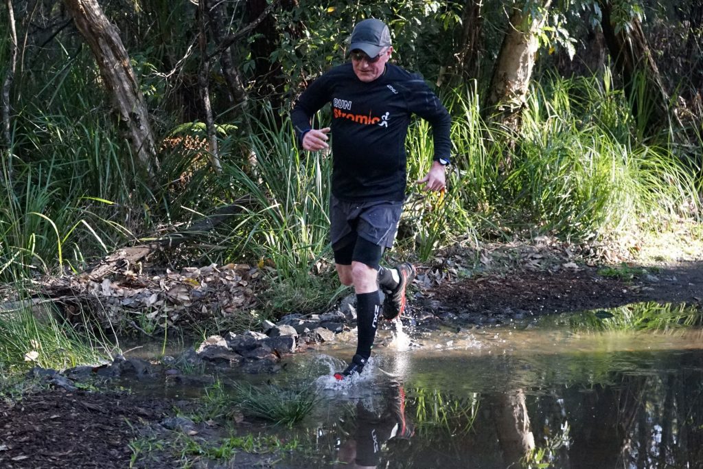 The rain had stopped after a wash out round the previous Saturday, but had left a water challenge for runners to navigate. Some chose to tip toe over the rocks to the side of the water, whilst others splashed right through the centre of the puddle, the water proving no challenge at all!